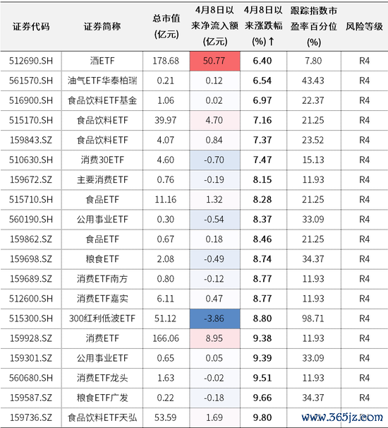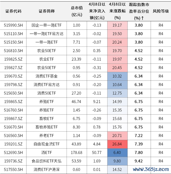 限度现在,4月8日以来,追踪指数涨幅小于10%的ETF合计19只。主要溜达在大蹧跶、公用业绩边界,具体如下表所示。