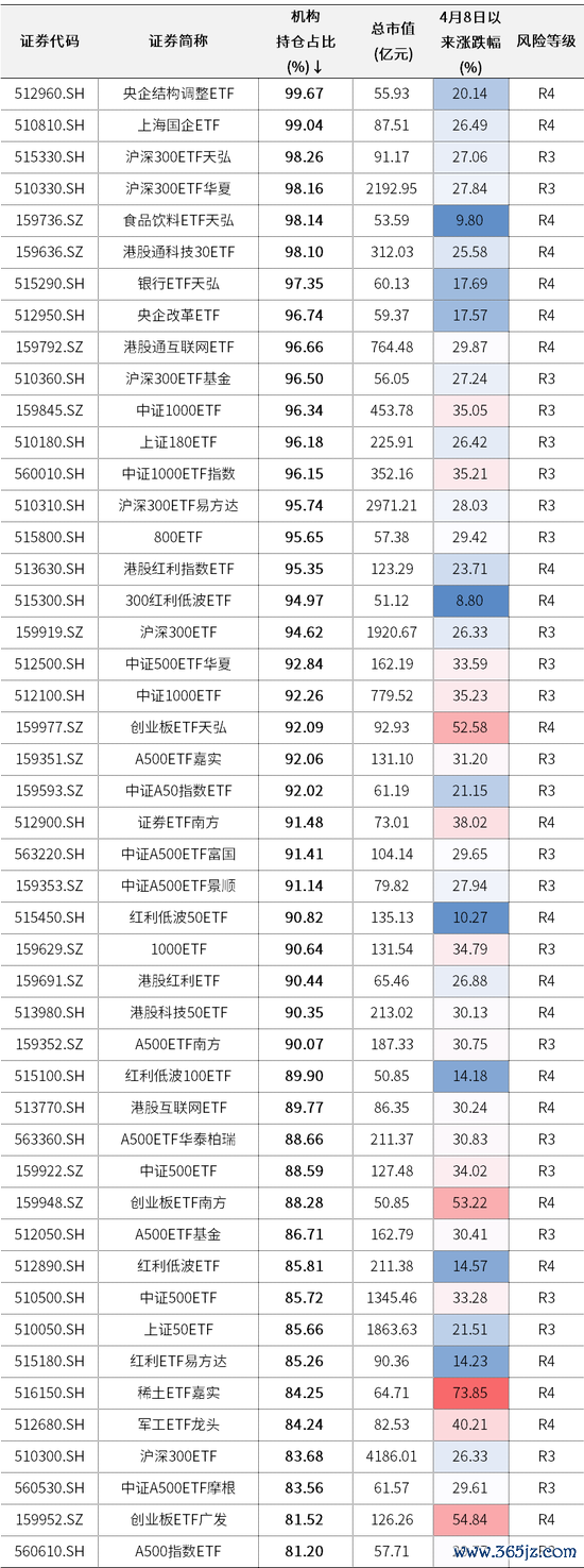 限度有最新数据的2024年报,机构持仓占比超80%,且ETF总市值超50亿元的ETF,共47只。具体如下表所示。