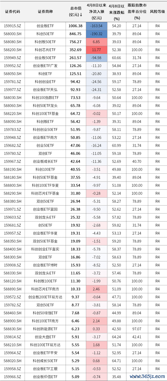 4月8日于今,上证指数、深证成指、创业板指诀别高潮24.92%、33.20%、51.73%,而同期: